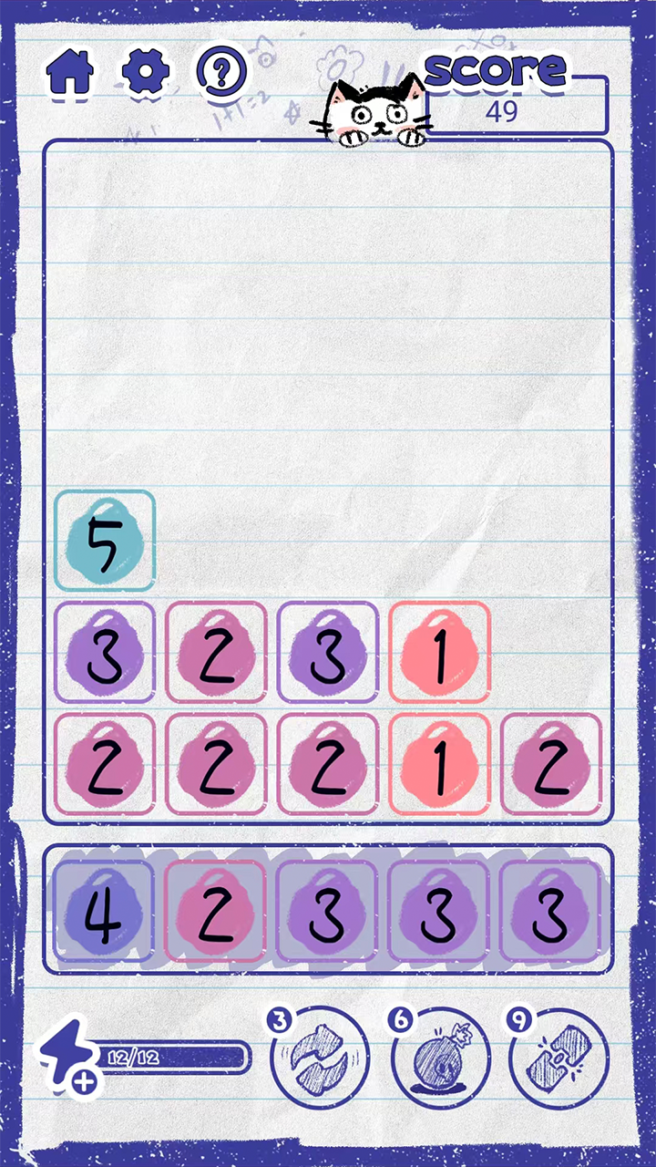 简介第五人格辅助位喵野数字游戏简介想玩新奇数字游戏吗?“喵野数字”别错过!在这,你要合成数字20。合成能攒能量,用能量可解锁刷新、消除、链接道具。游戏中数字排列最多6行,超了就失败。简约又有挑战,快开动脑筋,来这数字世